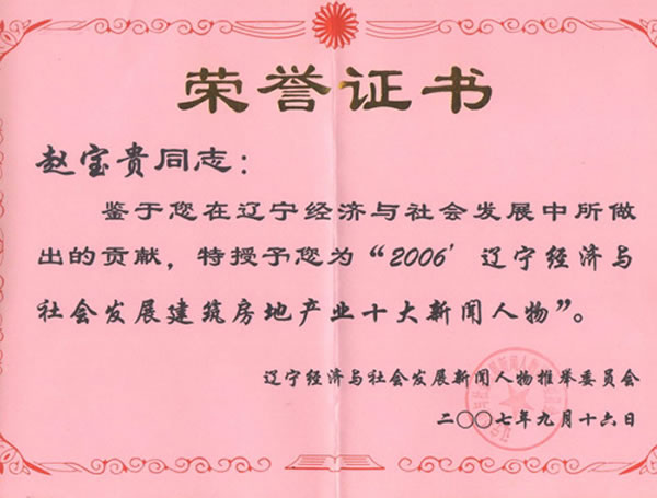 遼寧省非公有制經(jīng)濟(jì)領(lǐng)域構(gòu)建和諧企業(yè)先進(jìn)個(gè)人