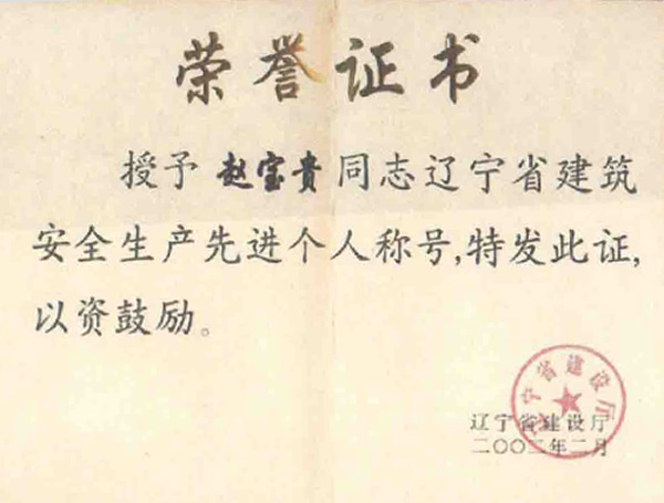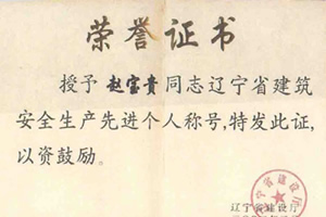 遼寧省建筑安全生產(chǎn)先進(jìn)個(gè)人