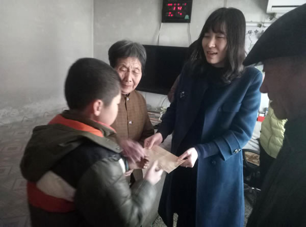 2018年3月6日,集團工會主席劉霜、造價部部長明輝、財務(wù)部呂賀及實驗小學(xué)趙瑞如老師等四人來看望慰問實驗小學(xué)貧困學(xué)生信博,并送去米、面、油等生活用品及助學(xué)金。