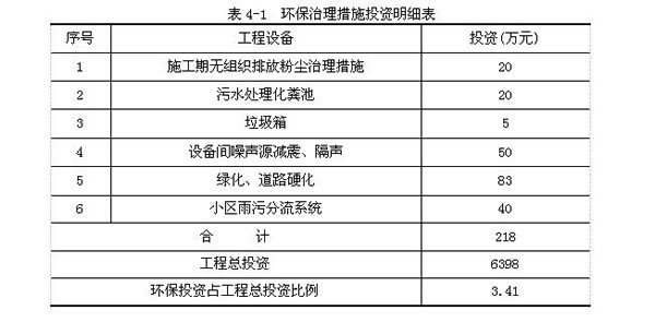 項目投資:預計投資34400萬元,其中環(huán)保投資220萬元,占總投資的0.67%。一期實際投資6398萬元,其中環(huán)保投資218萬元,占總投資的3.41%。