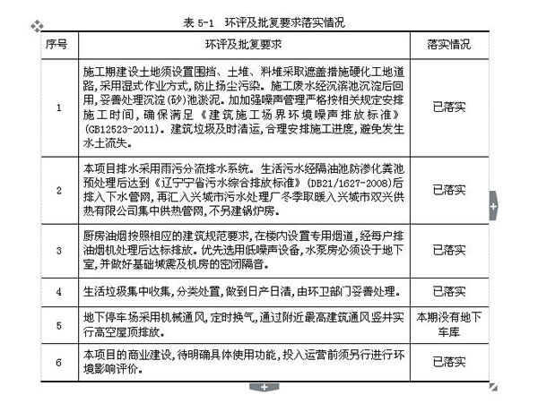 5.2該項目環(huán)評及批復要求落實情況見表5-1。