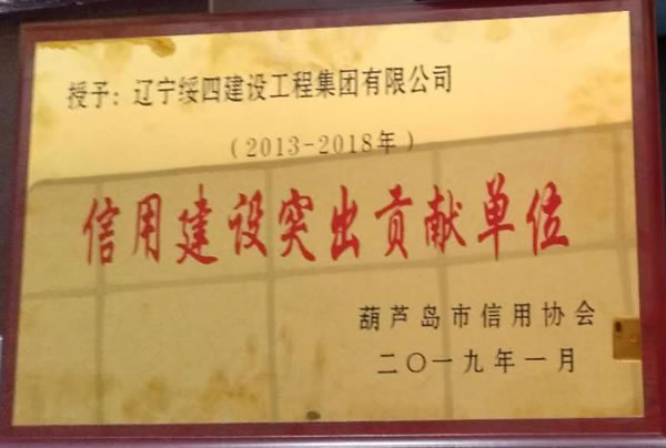| 我公司榮獲“2013-2018年度葫蘆島市信用建設突出貢獻單位” |