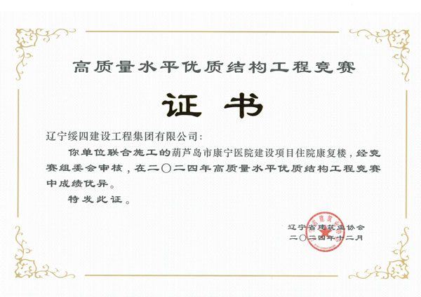 葫蘆島市康寧醫(yī)院建設項目住院康復樓被評為2024年高質量水平優(yōu)質結構工程